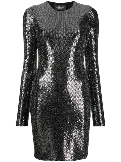 Long-sleeved Sequin Short Dress In Silver