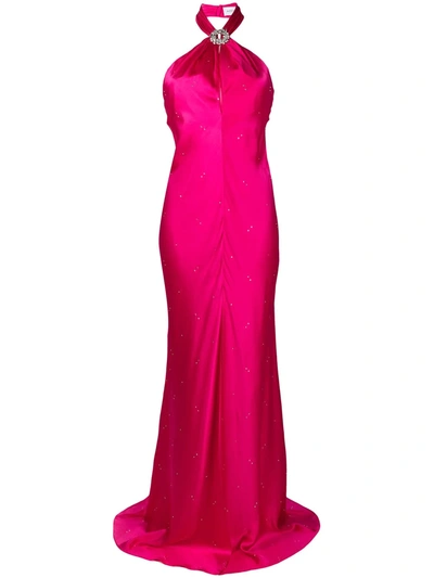Halterneck Cut-out Silk Gown In Pink