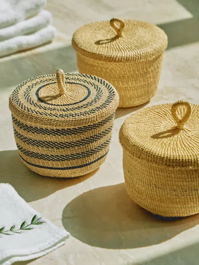 Banasco Handwoven Elephant Grass Lidded Storage Baskets (set Of 3) In Multi