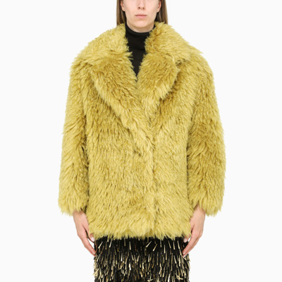 Yellow Fur Effect Coat In Mohair Beacagli Woman In Slime