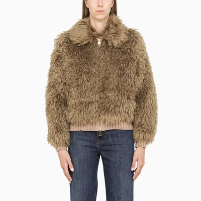 Short Oat-coloured Fur Coat In Beige