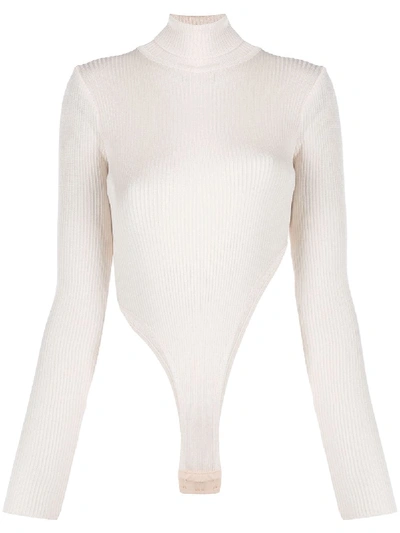 Knitted Asymmetric Bodysuit In Neutrals