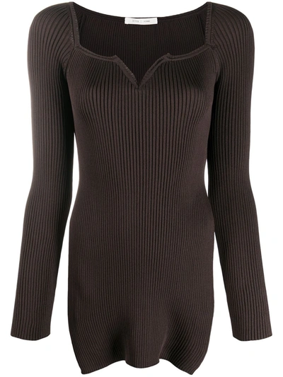 Side Slit Ribbed Knit Top In Black