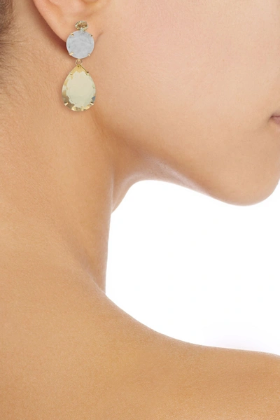 Gold-tone, Labradorite And Quartz Earrings In Light Green