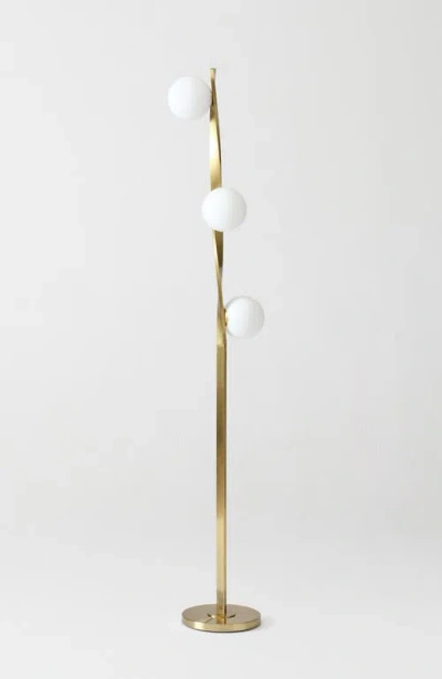 Nola 60' Dimmable Led Twisted Modern Floor Lamp With Glazed Glass Globes In Antique Brass
