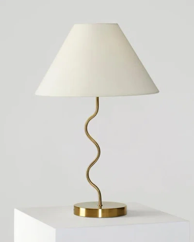 Squiggle 22' Led Table Lamp With Twisting Base And Ivory Empire Shade In Antique Brass