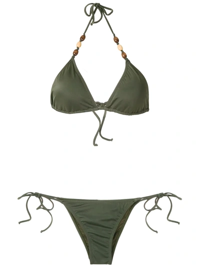 Embellished Triangle Bikini Set In Green
