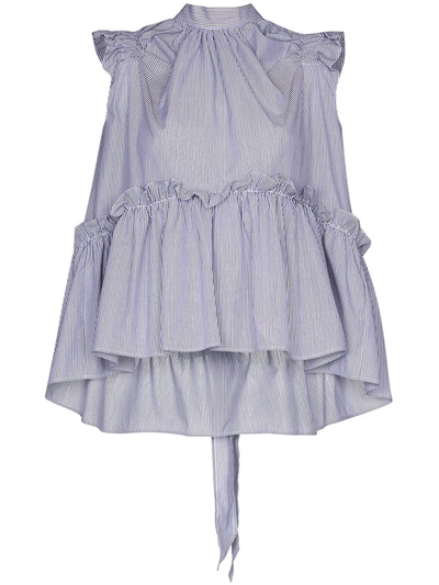 Posey Striped Ruffled Cotton Blouse In Blue