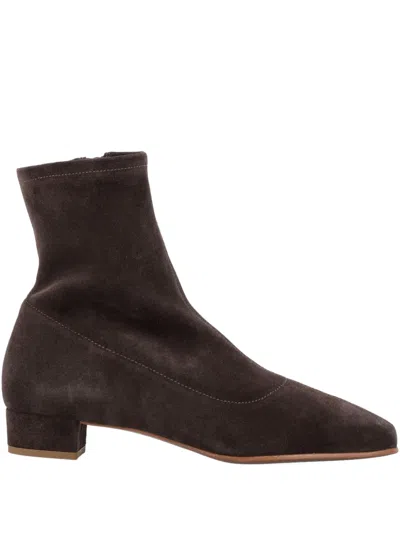 Este Ristretto Brown Suede Ankle Boots In Burgundy