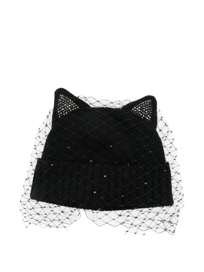 Embellished Veil Beanie In Black
