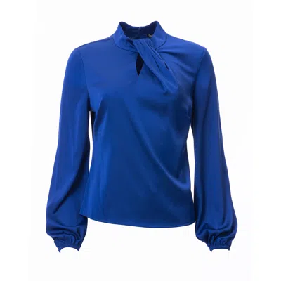 Women's Blue Draped Mock Neck Long Sleeve Shirt In Cobalt Solid