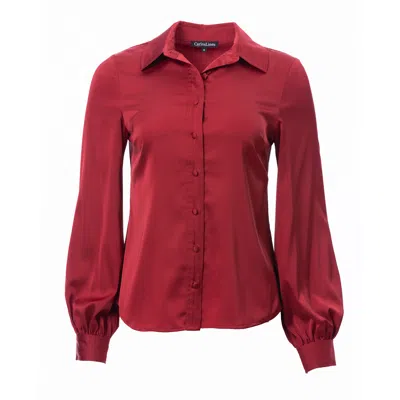 Women's Red Button Down Long Sleeve Shirt In Burgundy Solid