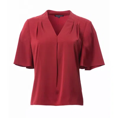 Women's Red V-neck Pleat Detail Flutter Sleeve Blouse In Burgundy Solid