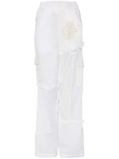 Panelled Broderie-anglaise Cargo Trousers In Neutrals