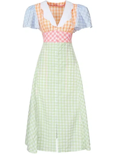 Gingham Embroidered Reise Dress In Multi