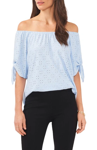 Cold Shoulder Knit Eyelet Top In Ocean Spray