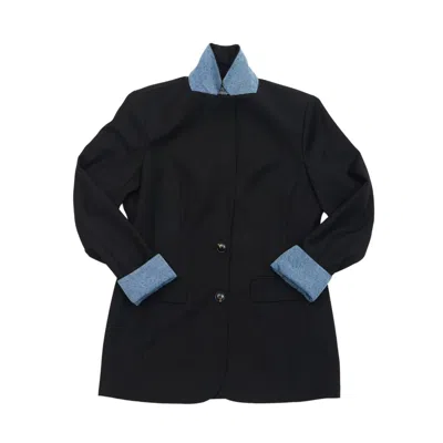 Women's Blue / Black Combo Jean Jacket In Blue/black