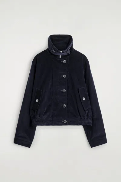 Ribbed-collar Boiled Merino Wool Jacket In Blue