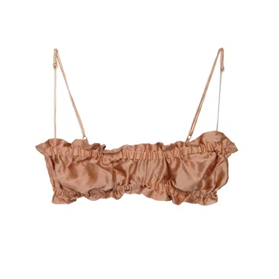 Women's Rose Gold Silk Scalloped Triangle Bra - Peach