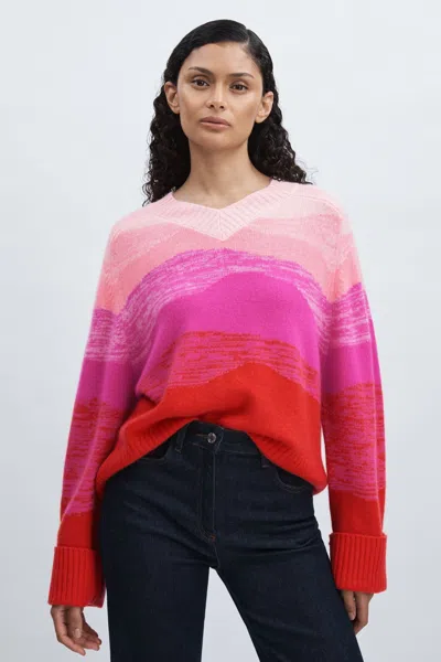 Collection 100% Cashmere Gradient-neck Jumper In Red/cream