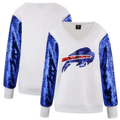 White Buffalo Bills Sequin Sleeve V-neck Pullover Sweatshirt