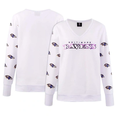 White Baltimore Ravens Sequin Fleece V-neck T-shirt