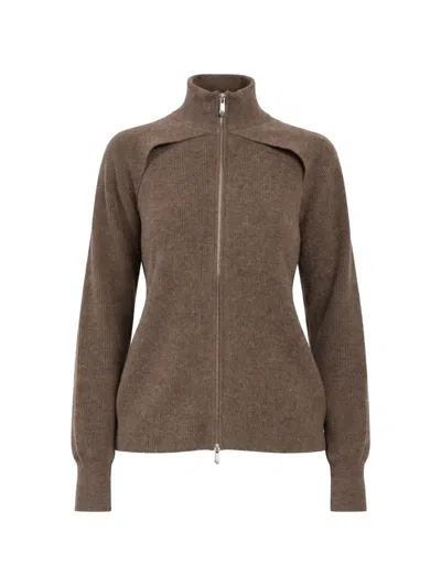 High-neck Zipped Jacket In Brown