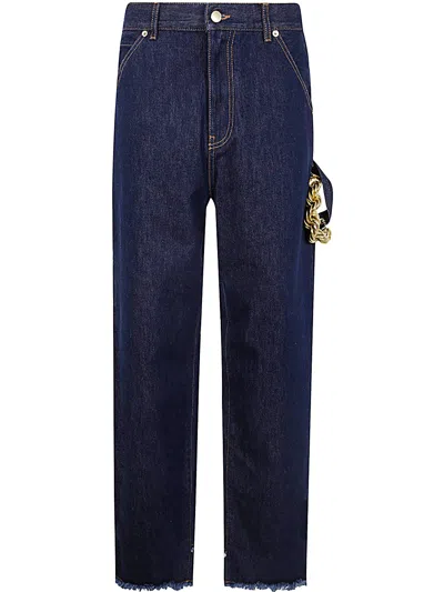 Lisa Chain Adorned Loose Fit Carpenter Raw Denim In Raw Blue Denim