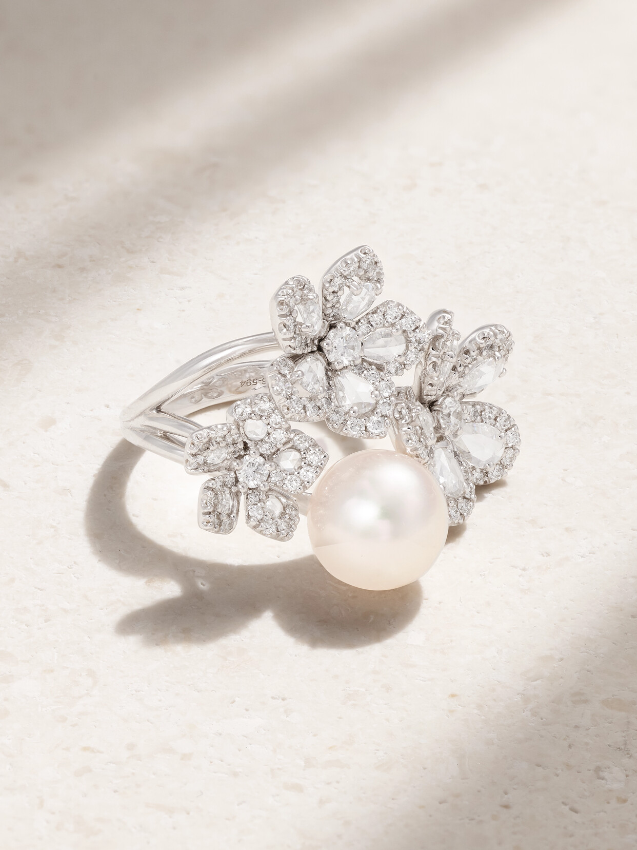 Miss Daisy 18-karat White Gold, Pearl And Diamond Ring In Metallic
