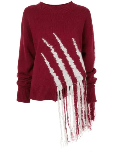 Fringe Knit Jumper In Red