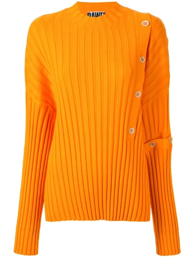 Buttoned Ribbed Jumper In Orange