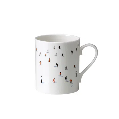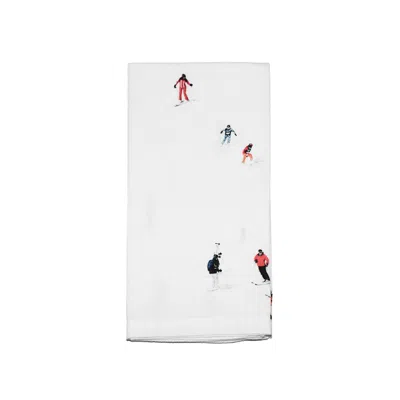 White Skiers Printed Linen Napkins - Set Of 4 In Multi