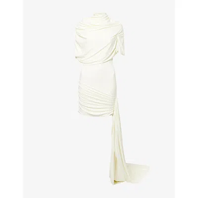 Womens Off White Tiffany Draped-neckline Stretch-woven Maxi Dress