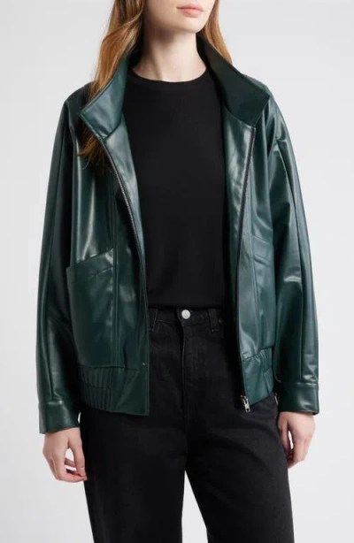 Paulina Oversize Faux Leather Jacket In Blue