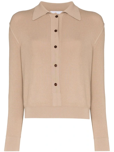 Button-up Polo Top In Neutrals