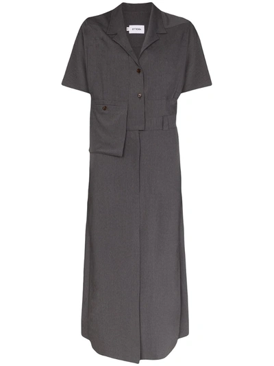 Collared Belted Shirt Dress In Grey