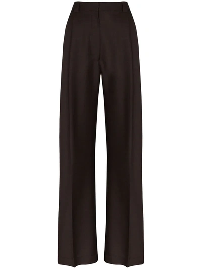 High Waist Tailored Wool Trousers In Brown
