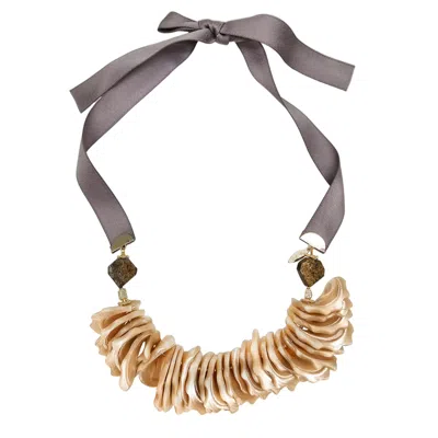 Women's Brown Giant Shell Pendant With Silk Ribbon Statement Necklace