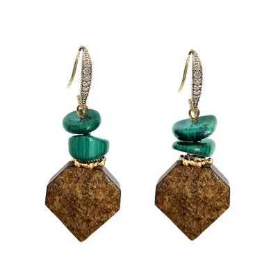 Women's Brown Tiger-eye With Green Bamboo Coral Earrings