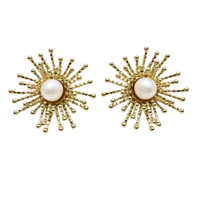 Women's Gold Flower Setting Pearls Stud Earrings