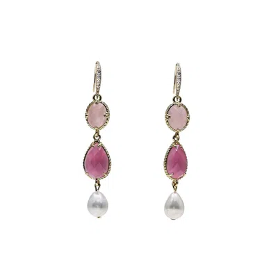 Women's Pink / Purple Strawberry Quartz Victoria Style Earrings In Multi
