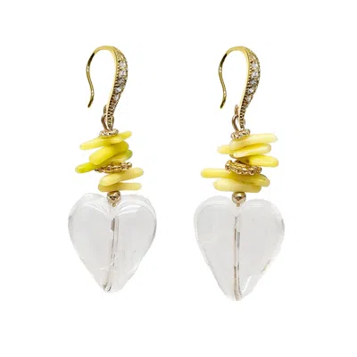 Women's White Quartz Heart And Yellow Bamboo Coral Earrings