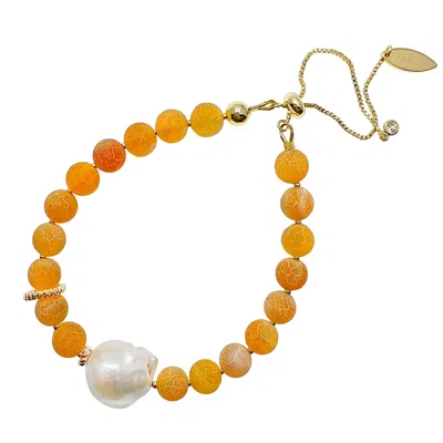 Women's Yellow / Orange Agate Bracelet With Baroque Pearl Adjustable Bracelet