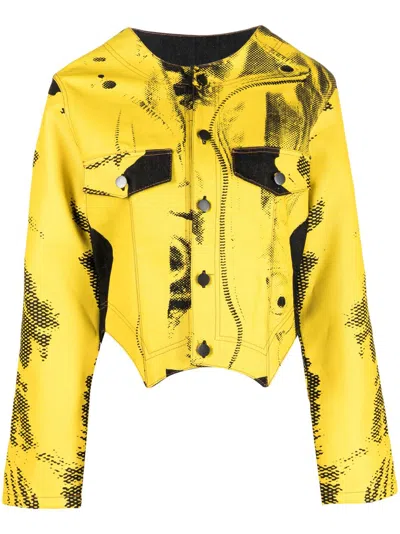 Asymmetric Graphic Print Denim Jacket In Yellow