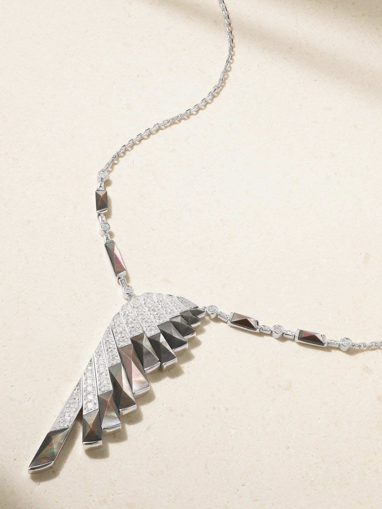 Wings Rising 18-karat White Gold, Mother-of-pearl And Diamond Necklace