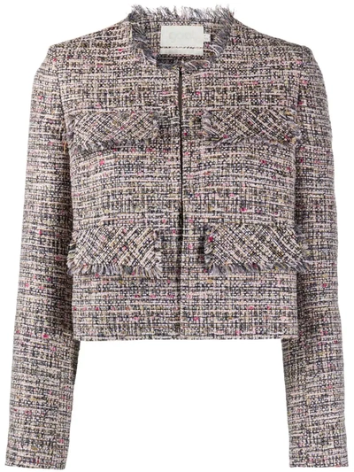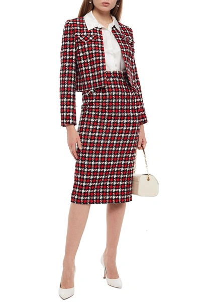 Cropped Wool And Cotton-blend Tweed Jacket In Red