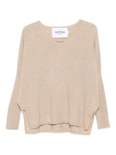 V-neck Long-sleeve Jumper In Neutral