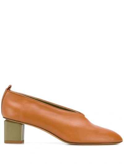 'mildred' Geometric Heel Choked-up Leather Pumps In Brown