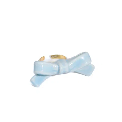 Women's Blue / Gold Bowtie Maniac Small Ribbon Ceramic Bowtie Gold Plated Brass Ring Blue Heaven