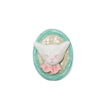 Women's Green / Pink / White Angry Puss Portrait Cat Brooch Pendant In Multi